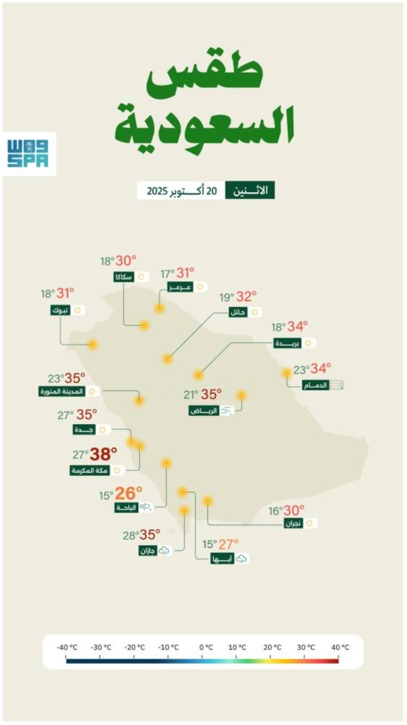 توقعات حالة الطقس: سماء غائمة جزئيًا وسحب رعدية تتواجد في أربع مناطق