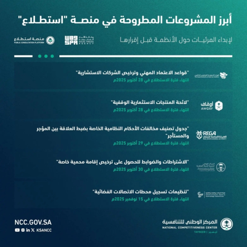طرح 42 مشروعًا عبر منصة “استطلاع” لجمع آراء الجمهور والقطاعين الحكومي والخاص